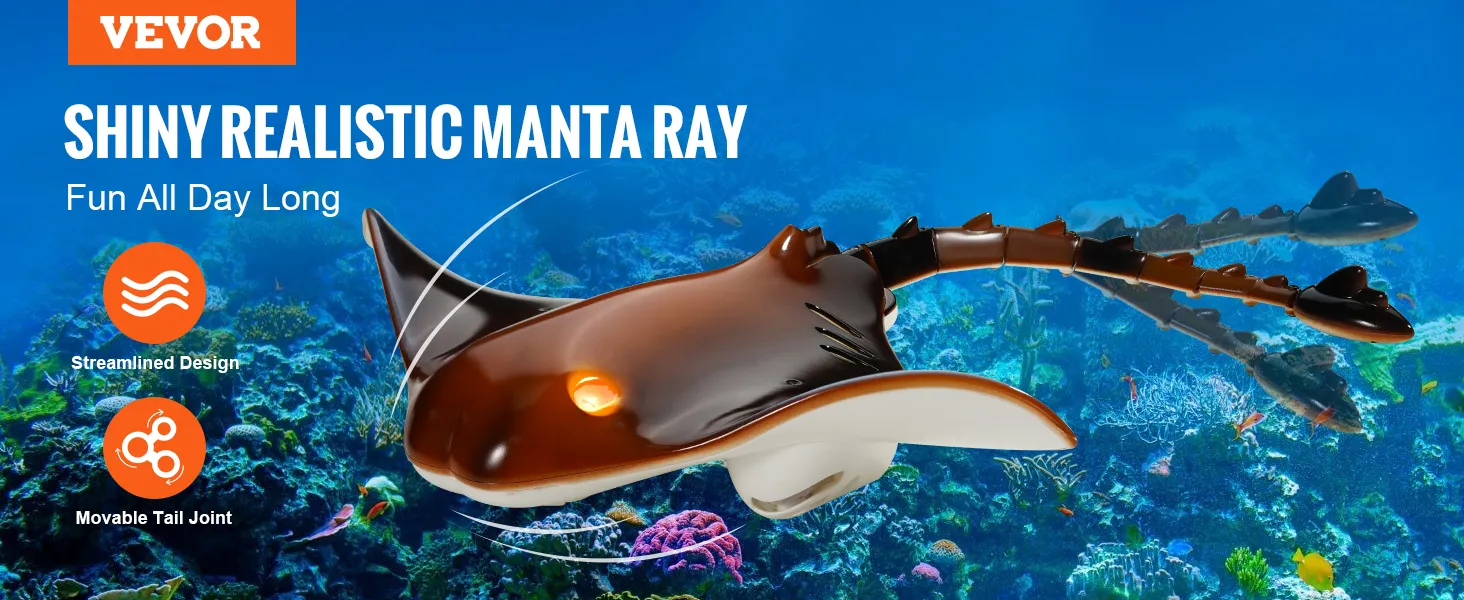 Dit op afstand bestuurbare speelgoedmantarog glijdt door het water dankzij het slanke, gestroomlijnde lichaam, waardoor de weerstand wordt verminderd. De meervoudige staart beweegt als een echte manta, waardoor het spelen nog leuker en levensechter wordt.