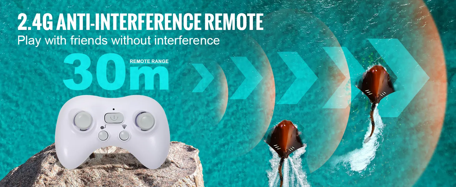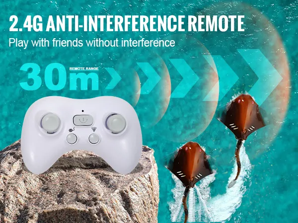 Met een bereik van maximaal 30 meter kunnen kinderen de 2,4 GHz afstandsbediening gebruiken om hun op afstand bestuurbare speelgoedmantarog zonder interferentie tegen vrienden te laten spelen. Het gaat om plezier en samen herinneringen creëren.