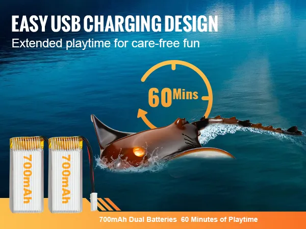 Langere speeltijd: met een dubbel batterijsysteem van 700 mAh en direct opladen via USB biedt het op afstand bestuurbare mantarogspeelgoed meer dan 60 minuten speelplezier. Neem een powerbank mee voor meer speeltijd en houd het plezier gaande zonder batterijproblemen.