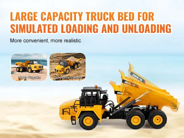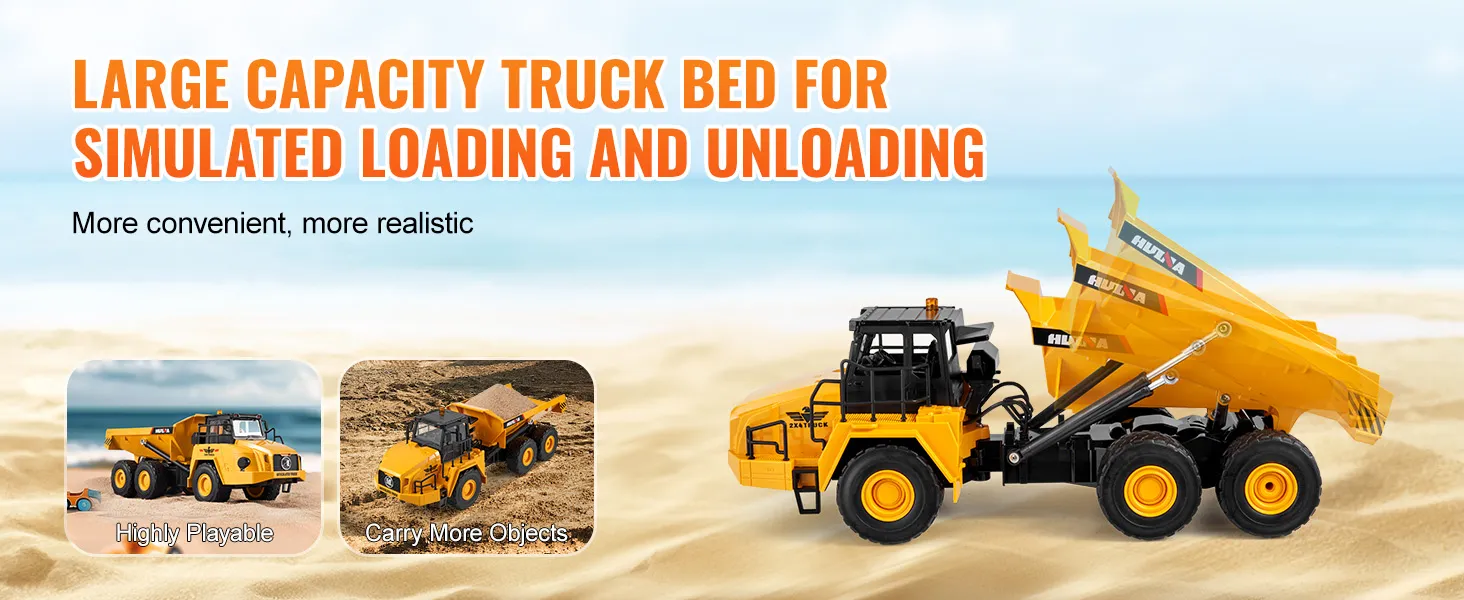 Built to Last: Made from durable materials, including a sturdy bed, battery compartment, and simulated hydraulic rod, this remote control dump truck handles over 4.4 pounds of load with ease. It's tough enough to keep up with all the adventures your kids can dream up.