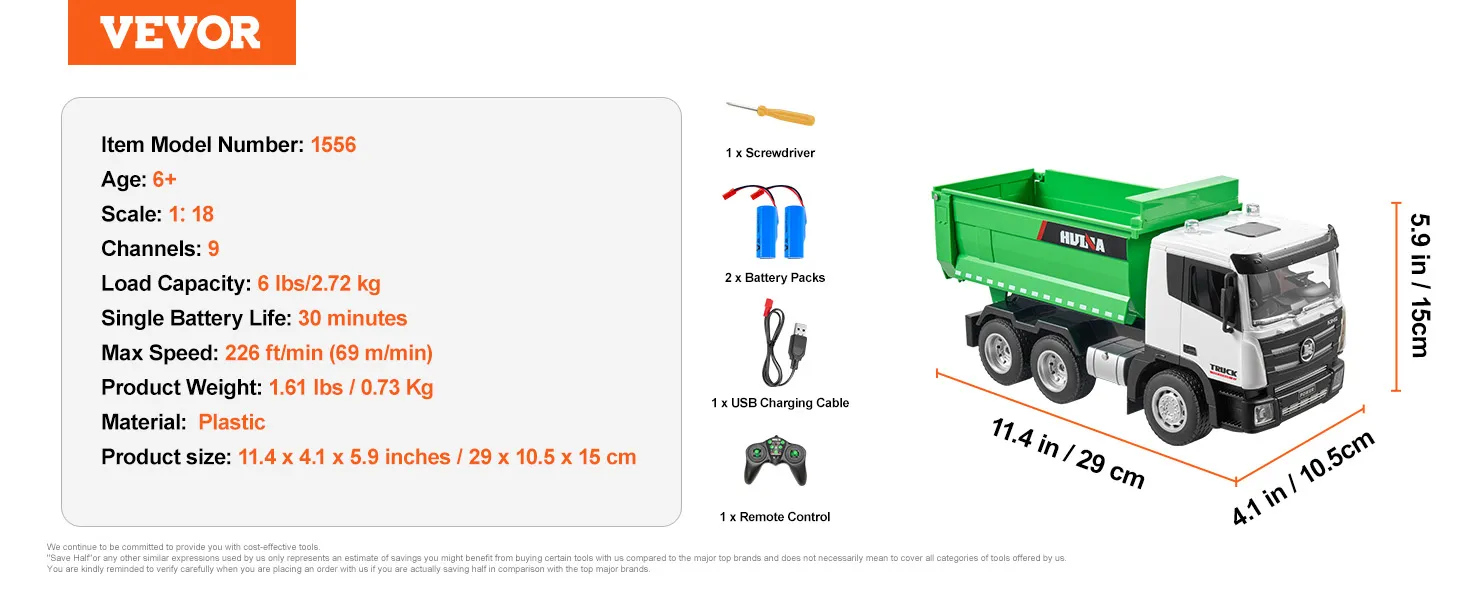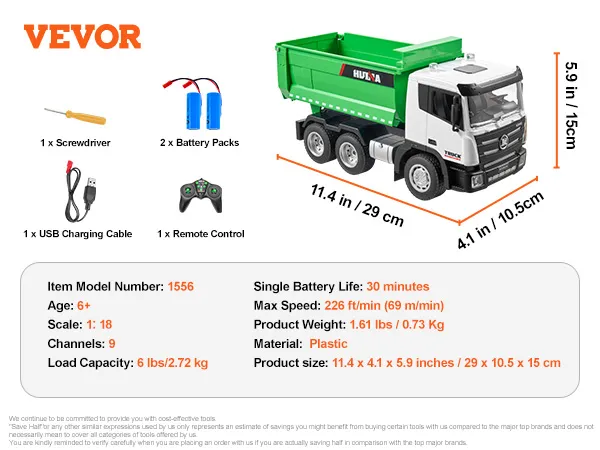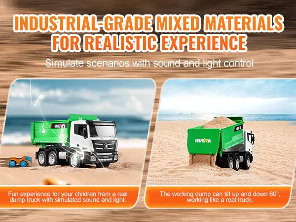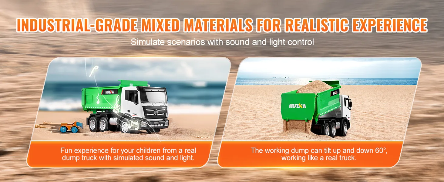 Built to Last: Made from durable materials, including a sturdy bed, battery compartment, and simulated hydraulic rod, this remote control dump truck handles over 6 pounds of load with ease. It's tough enough to keep up with all the adventures your kids can dream up.