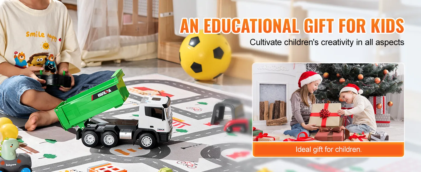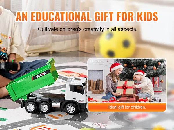 Kids can dive into a construction site simulation with this RC dump truck toy made from high-quality materials. The sound and light effects create a lifelike experience, showing what a real dump truck does and adding to the interactive fun.