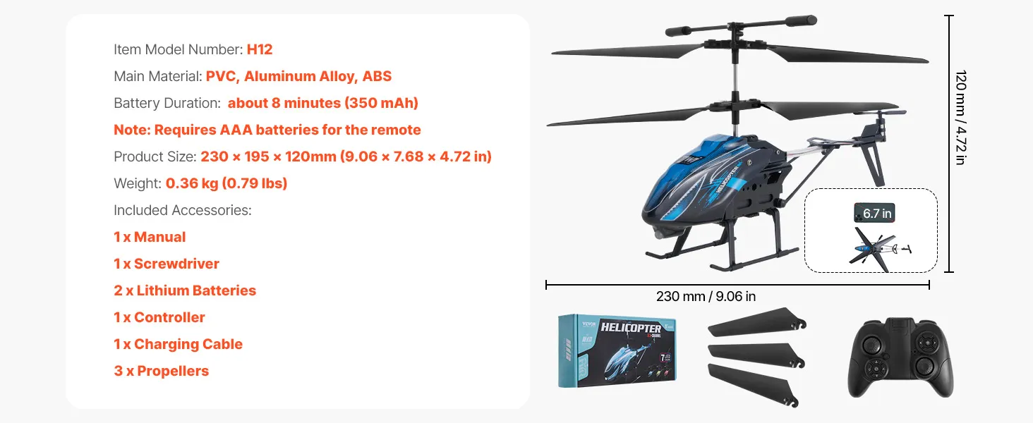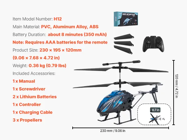 Volledige controle: Uitgerust met een geavanceerd vluchtcontrolesysteem en een verbeterde gyroscoop, biedt de minihelikopter een stabiele zweefvlucht, ideaal voor gebruik binnen en buiten in kalme omstandigheden. Hij zorgt voor een soepele vlucht met minimaal risico op controleverlies.