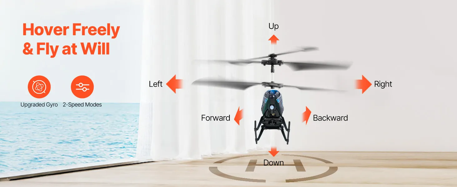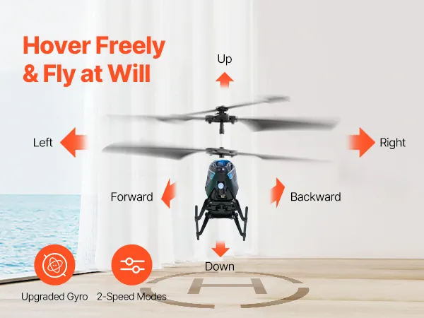 Uitgerust met een verbeterd gyroscoopsysteem voor automatisch en stabiel zweven, waardoor de positiecontrole eenvoudiger wordt. Geniet van een soepele vlucht met instelbare snelheid en richting.