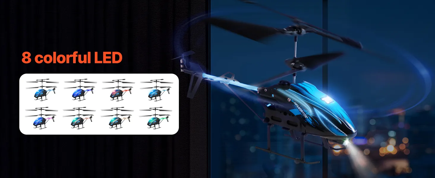 Leuke nachtvlucht: dankzij meerdere led-lichteffecten ziet de op afstand bestuurbare helikopter er fantastisch uit tijdens nachtvluchten en geeft hij veiligheidswaarschuwingen wanneer de batterij bijna leeg is. Leuk voor binnen en buiten.