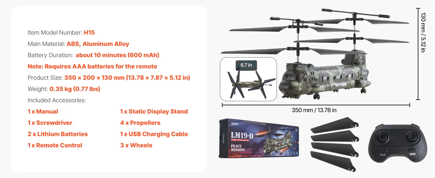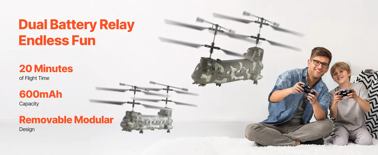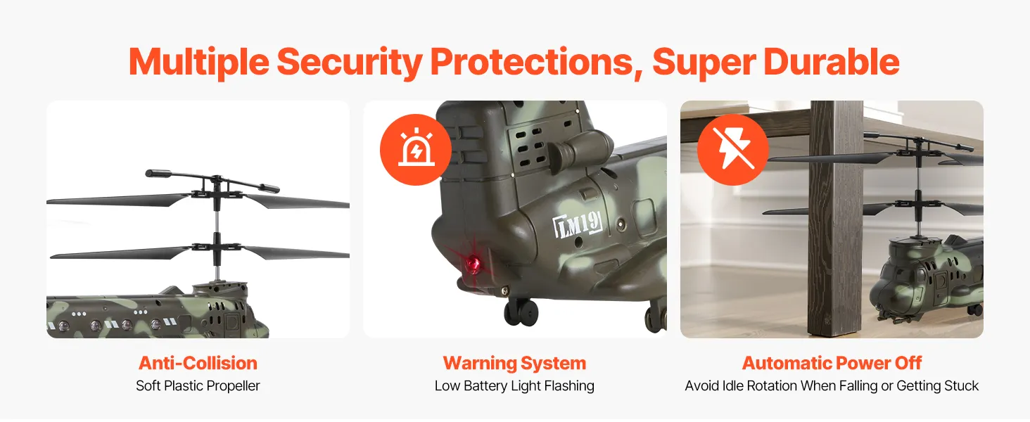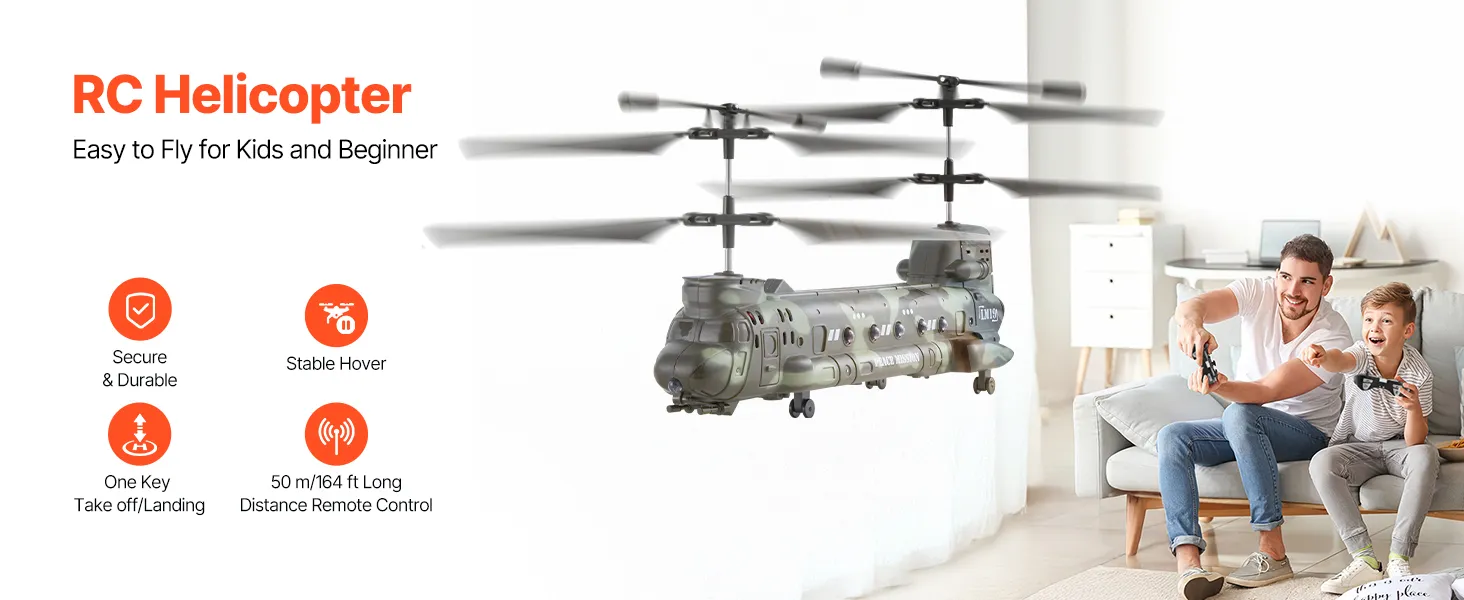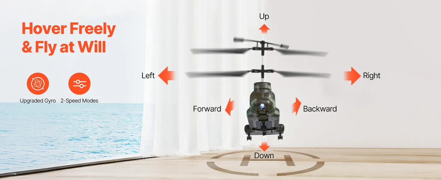 Volledige controle: Uitgerust met een geavanceerd vluchtcontrolesysteem en een verbeterde gyroscoop, biedt de minihelikopter een stabiele zweefvlucht, ideaal voor gebruik binnen en buiten in kalme omstandigheden. Hij zorgt voor een soepele vlucht met minimaal risico op controleverlies.