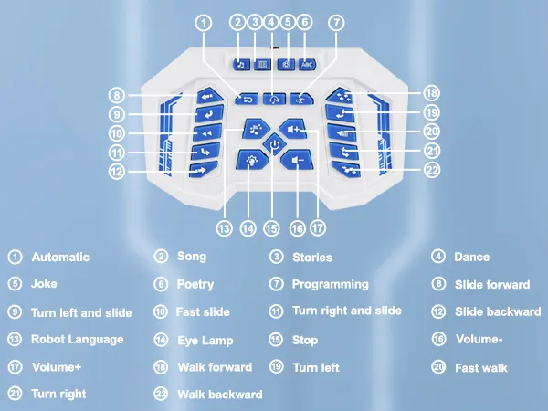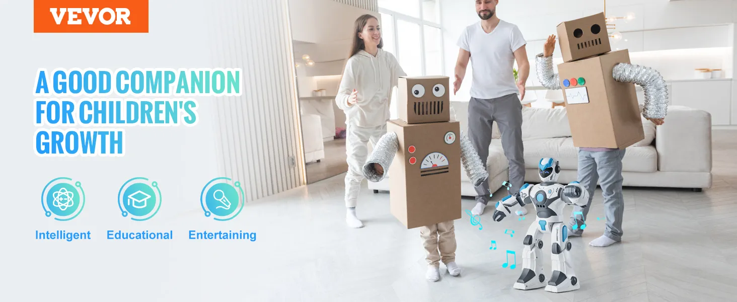 Multifunctioneel ontwerp: deze robot is niet alleen speelgoed, maar ook een leraar! Hij vertelt verhalen, speelt muziek, danst en laat kinderen kennismaken met programmeren. Met 5 verhalen, 4 dansroutines, 8 liedjes, 5 gedichten, 10 eenvoudige stemcommando's, 4 gebarenbedieningen en 30 programmeeropties kan hij tot 30 commando's opnemen. Perfect om creativiteit aan te moedigen en basisprogrammering te leren!