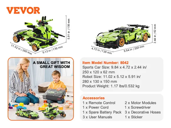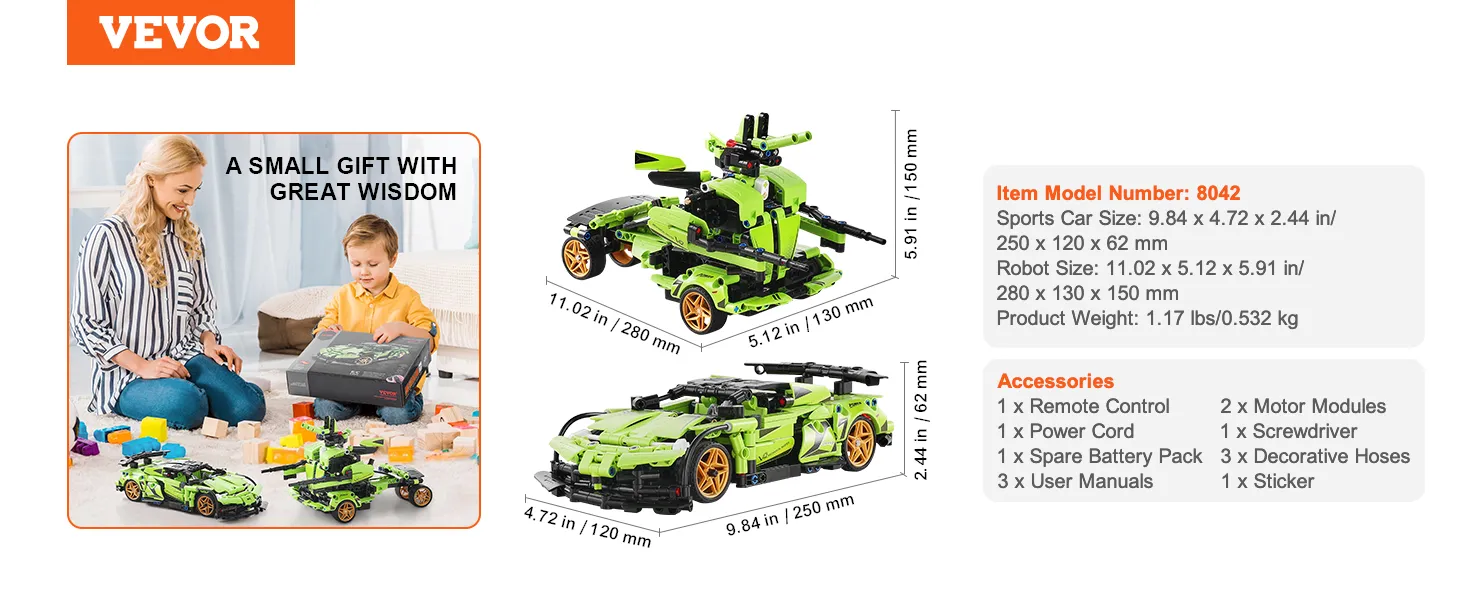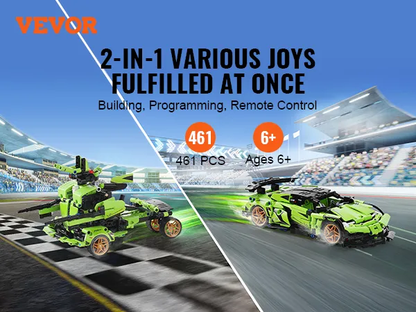 Eenvoudig te bouwen, veel plezier: met deze 2-in-1-set kunnen kinderen een sportwagen of een vechtrobot bouwen. Of ze nu in elkaar zetten, bedienen met de afstandsbediening of zich verdiepen in programmeren, er is iets voor elk speelniveau. De 461-delige set zit boordevol details, waardoor het bouwen eenvoudig en spannend wordt. Bovendien kunnen kinderen hun fantasie gebruiken en hun eigen ontwerpen bedenken, zodat het plezier urenlang kan duren.