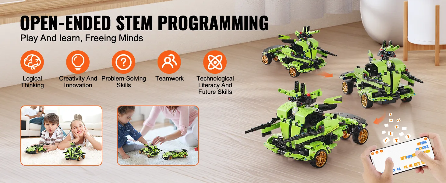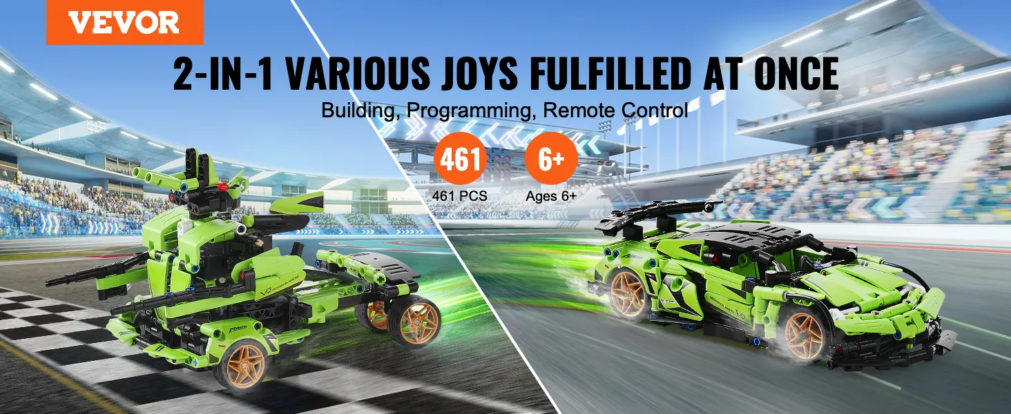 VEVOR STEM-bouwspeelgoed voor kinderen, 2-in-1 bouwstenen met 461 stukjes, afstandsbedieningsauto's, afstandsbediening en app-gestuurde auto/robot, RC STEM-robotbouwset, cadeaus voor jongens en meisjes van 6, 7, 8, 9, 10, 11 en 12+