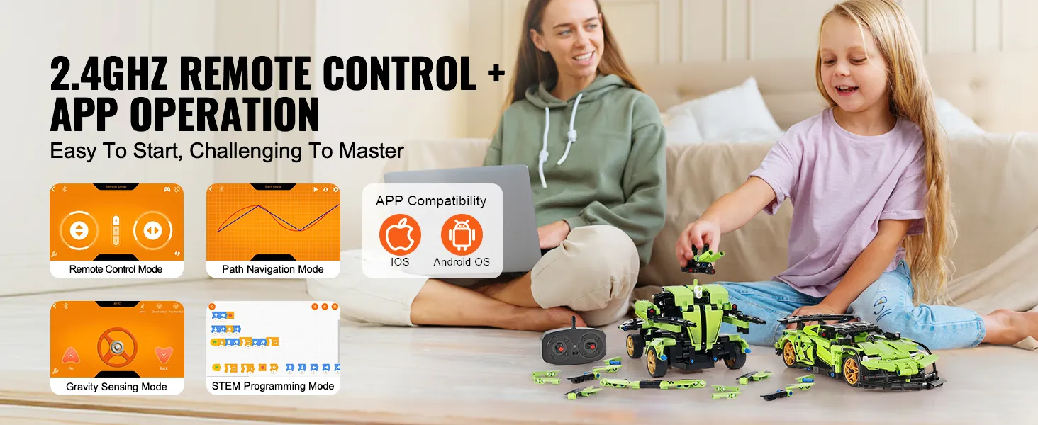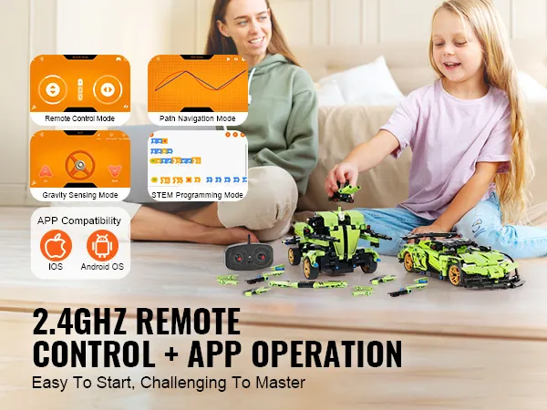 Interactief en spannend: deze STEM-robotbouwset ondersteunt app- en afstandsbedieningsopties. In de app kunnen kinderen kiezen uit meerdere modi, zoals afstandsbediening, padnavigatie, zwaartekrachtdetectie en STEM-programmering. Met een bedieningsbereik tot 20 meter en Bluetooth 2.4G-technologie kun je genieten van stabiele signalen en soepel gamen. De app werkt op zowel iOS- als Android-besturingssystemen, waardoor hij perfect is voor familieplezier of racen met vrienden.