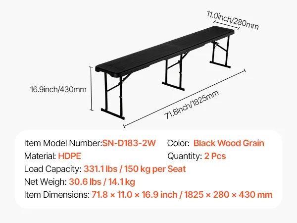 Comfortabel zitten: Deze tweedelige teambank van 1825 x 280 x 430 mm (71,8 x 11,0 x 16,9 inch) is zeer draagbaar en lichtgewicht, en biedt comfortabel zitten. Geen montage vereist - direct klaar voor gebruik.
