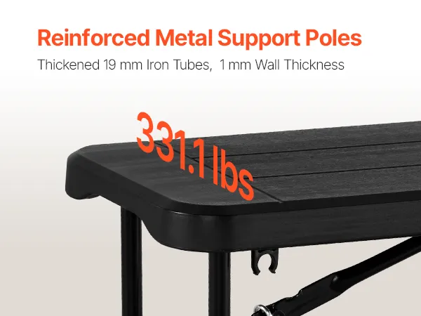 Veilig en stabiel: de poten van deze opvouwbare bank zijn gemaakt van gecoate, robuuste stalen vorkbeenpoten. De stalen buizen zijn verdikt tot 19 mm en hebben een wanddikte van 1 mm, waardoor ze robuust, betrouwbaar en duurzaam zijn. Het ontwerp met dubbele dwarsbalken zorgt voor stabiliteit, voorkomt kantelen en zorgt voor een veilige en stabiele stand.
