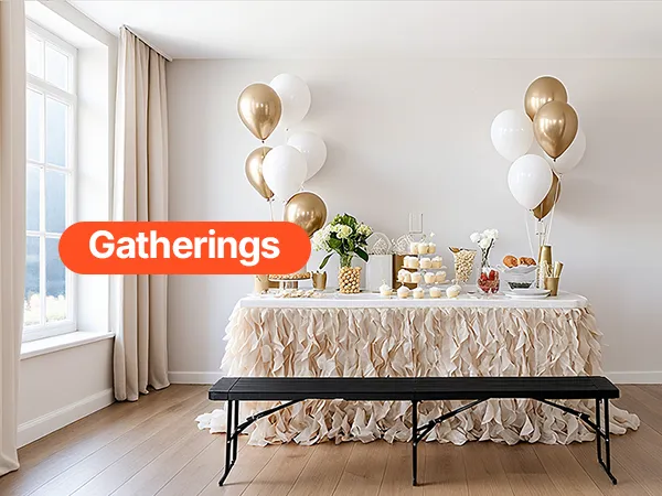 Brede toepassing: De bierbank heeft een elegant en eenvoudig opvouwbaar ontwerp met een klassieke kleur. De minimalistische look maakt hem geschikt voor bruiloften, barbecues en andere evenementen waar direct plaats nodig is, en de montage is in slechts enkele seconden gedaan.