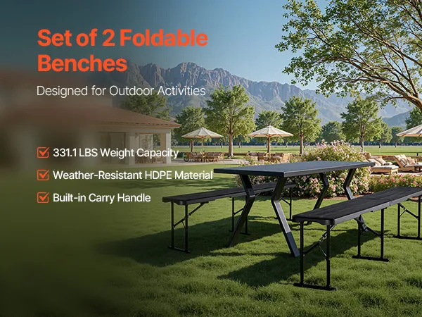 VEVOR Draagbare Teambank Campingbank 182cm, Opvouwbare Bank voor Picknicks Feesten Kampeermaaltijden, Bierbank Gemaakt van HDPE (150 kg Draagvermogen per Zitplaats), 2-delige Feestbank met 2 Draagtassen, Zwart