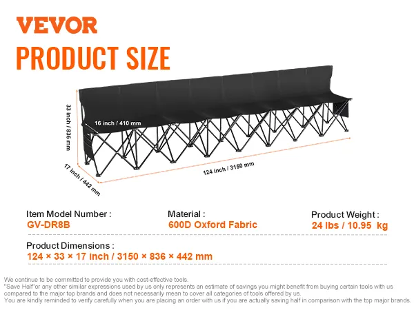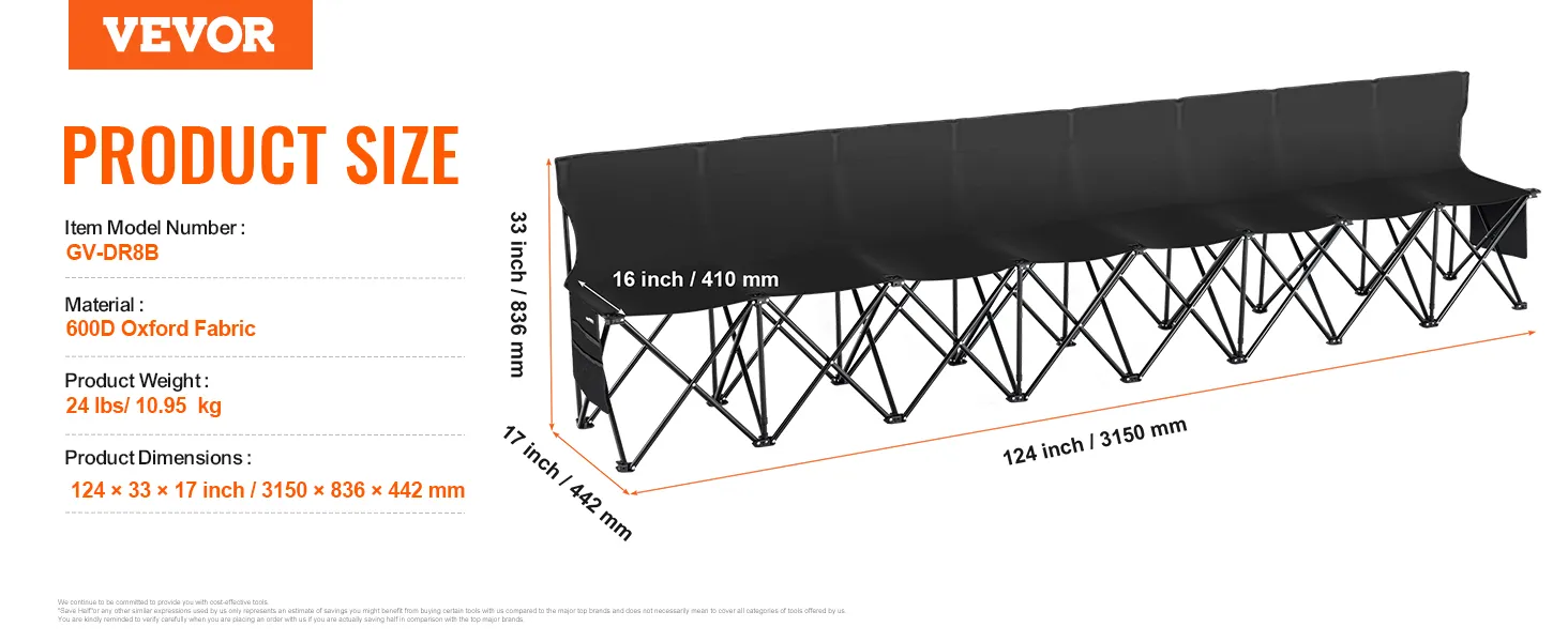 De VEVOR 8-zits draagbare opvouwbare bank is lichtgewicht en draagbaar. Hij is gemakkelijk te vervoeren en op verschillende locaties op te zetten. De bank weegt slechts 24 lbs, waardoor transport eenvoudig is. Het draagbare ontwerp is perfect voor buitenactiviteiten. U kunt hem snel opzetten, of het nu gaat om een sportevenement of een familiebijeenkomst. Bovendien wordt de bank geleverd met een draagtas. Dit maakt hem nog gemakkelijker te verplaatsen en op te bergen. Dit lichtgewicht ontwerp doet echter geen afbreuk aan de stabiliteit. Onze opvouwbare kampeerstoelbank blijft sterk en betrouwbaar, en biedt een betrouwbare zitoptie. Geniet van het gemak van het verplaatsen en opzetten van uw draagbare bank.