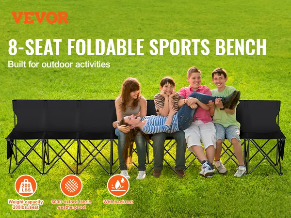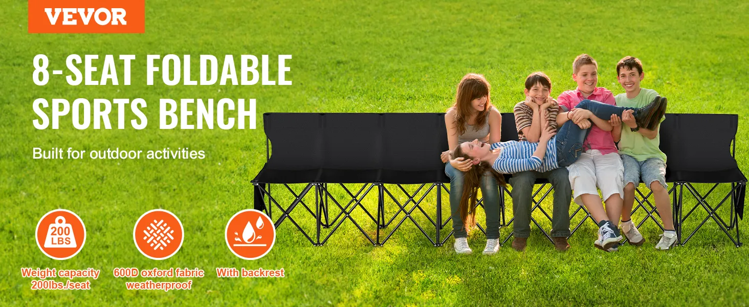 De VEVOR 8-zits draagbare opvouwbare bank biedt ultiem comfort en gemak. De bank wordt geleverd met een rugleuning voor extra comfort en is lichtgewicht en gemakkelijk mee te nemen. Er is geen montage nodig; gewoon openklappen en gebruiken. Deze bank is perfect voor buitenactiviteiten. Hij ondersteunt maximaal 8 personen, waardoor hij ideaal is voor teamsporten of familiebijeenkomsten. Onze outdoor kampeerstoel valt op voor groepssporten en familiebijeenkomsten. De bank is gemaakt van duurzaam 600D Oxford-materiaal, waardoor hij sterk en betrouwbaar is voor langdurig gebruik. Het stevige frame zorgt voor stabiliteit, waardoor u zich geen zorgen hoeft te maken. U kunt verwachten dat de bank perfect presteert bij verschillende buitenevenementen. Geniet van comfort in uw zak met deze draagbare, opvouwbare bank!