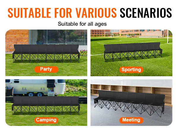 De VEVOR 8-zits draagbare opvouwbare bank heeft een sterk en stabiel frame. Dit frame zorgt voor betrouwbare zitplaatsen voor mensen van alle leeftijden. De bank kan tot 8 personen ondersteunen, waardoor hij veelzijdig is. De stabiliteit van het frame biedt een esthetische zitoptie, wat vooral belangrijk is voor buitenevenementen waar stabiliteit van het grootste belang is. De solide constructie van de bank zorgt ervoor dat hij stabiel blijft, zelfs op oneffen oppervlakken, waardoor hij geschikt is voor verschillende buitenlocaties. Bovendien verbetert het stevige frame ook de duurzaamheid van de bank. Geniet van een betrouwbare en veilige zitoptie voor iedereen.