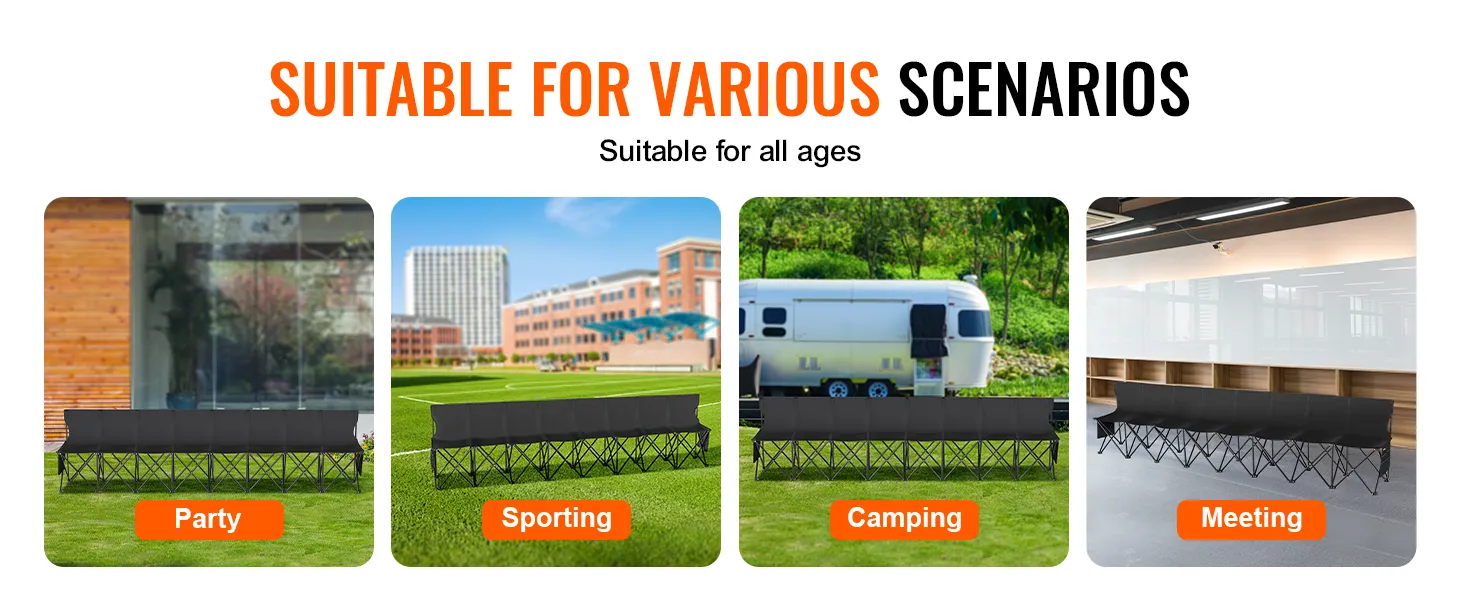 Dit is een praktische keuze voor iedereen die draagbare zitplaatsen nodig heeft. Het is perfect voor sportevenementen, buitenactiviteiten en kamperen. Het lichte en draagbare ontwerp van de bank maakt het gemakkelijk om te gebruiken in verschillende omgevingen. U kunt het snel opzetten voor voetbal-, basketbal- of andere sportevenementen. Ook is het ideaal voor familiebijeenkomsten of picknicks in de buitenlucht. Bovendien heeft de bank een betrouwbare stof en een stevig frame om verschillende omstandigheden aan te kunnen. Deze veelzijdigheid maakt het geschikt voor iedereen die draagbare zitplaatsen nodig heeft. Geniet van de flexibiliteit om uw bank in meerdere scenario's te gebruiken.