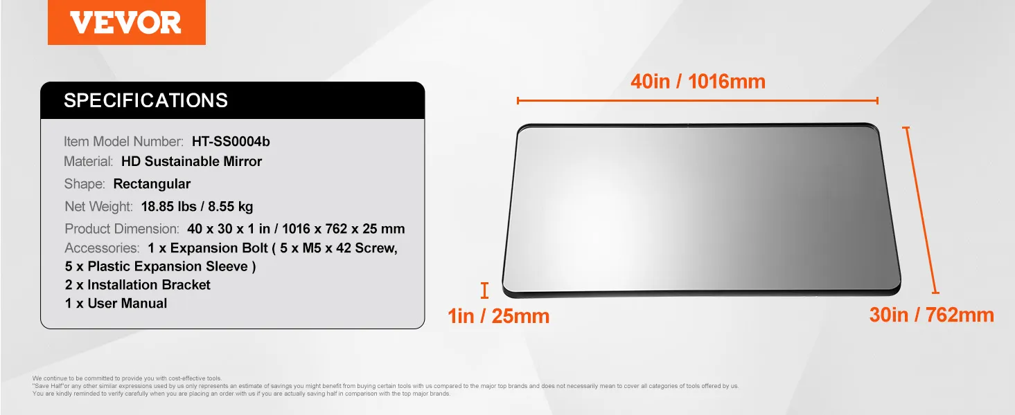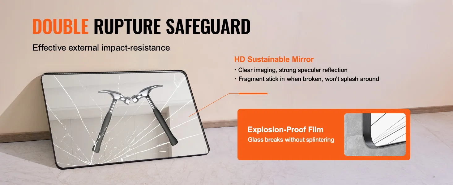 Durable & Sturdy Mirror with Scratch-Resistance: This 0.15" high-definition mirror is daily wear & scratch-resistant , maintaining a fresh surface. The shatter-resistant film boosts impact-resistance, providing long-lasting clarity for any space.