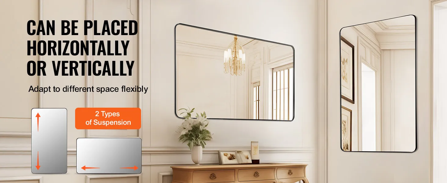 Flexible Installation for Any Room: This mirror can be easily mounted in bathrooms, hallways, living rooms, or bedrooms, blending seamlessly with various interior styles. Its adaptable design allows it to fit comfortably into different layouts.