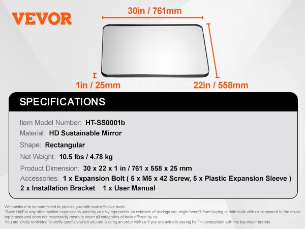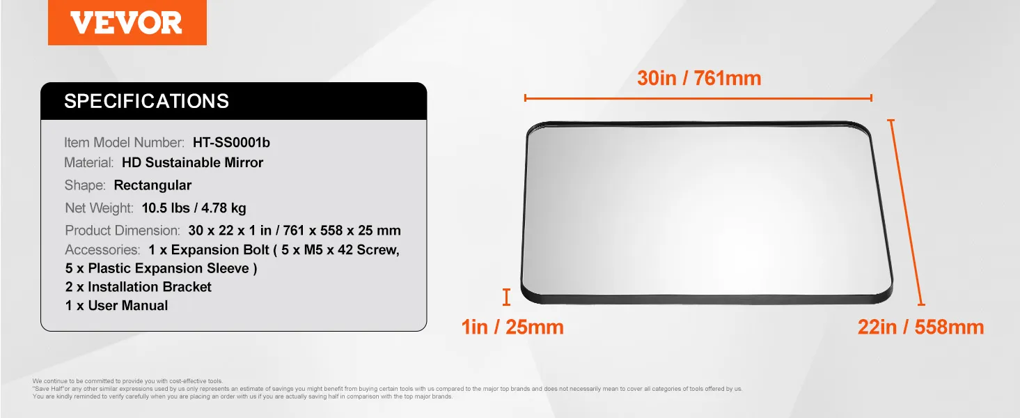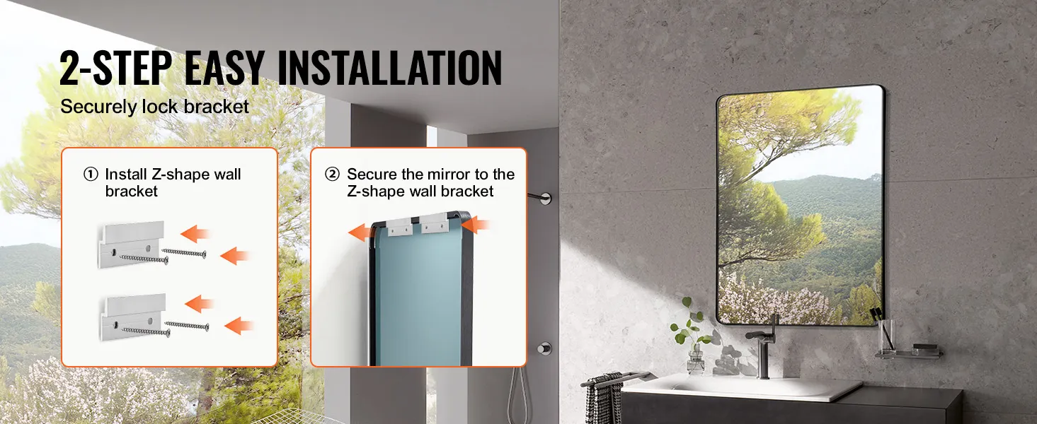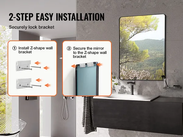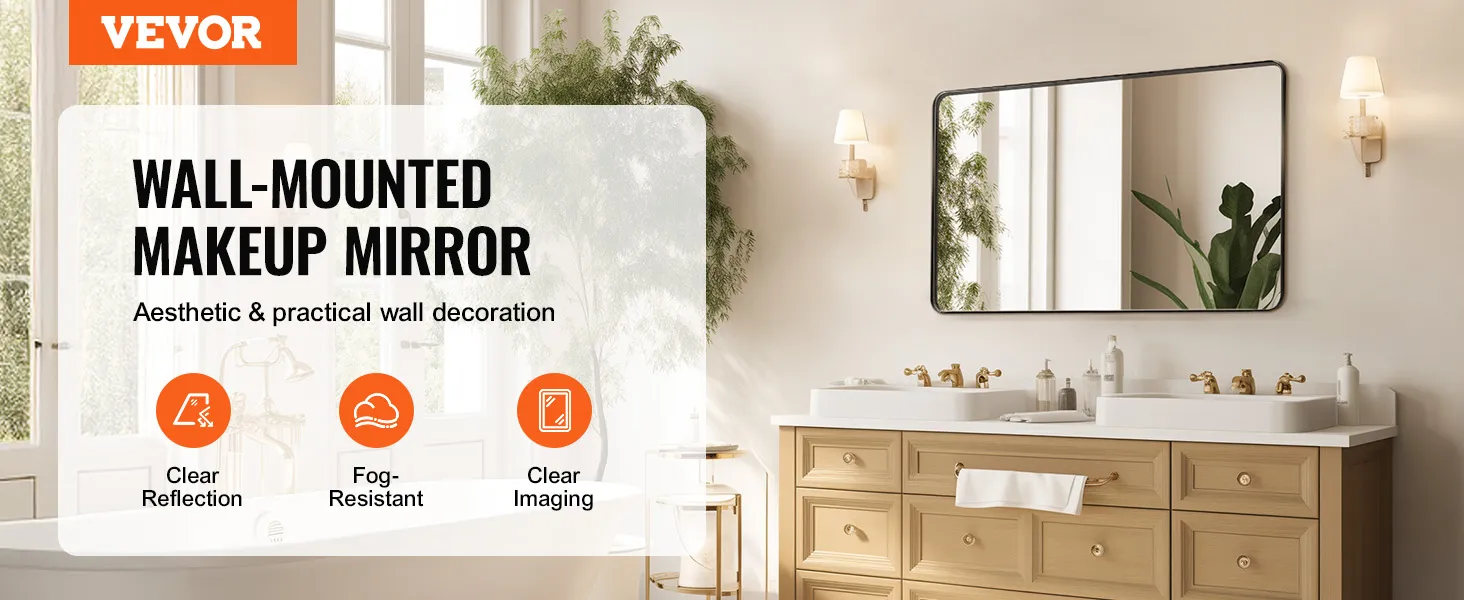VEVOR Wall Mounted Makeup Mirror, 0.15" Thick, 22" x 30" Mirror with Aluminium Alloy Frame & Explosion-Proof Film, Scratch-Resistant Mirror with Z-Shaped Bracket, Fit for Bathroom/Bedroom/Living Room VEVOR Wall Mounted Makeup Mirror, 0.15" Thick, 22" x 30" Mirror with Aluminium Alloy Frame & Explosion-Proof Film, Scratch-Resistant Mirror with Z-Shaped Bracket, Fit for Bathroom/Bedroom/Living Room