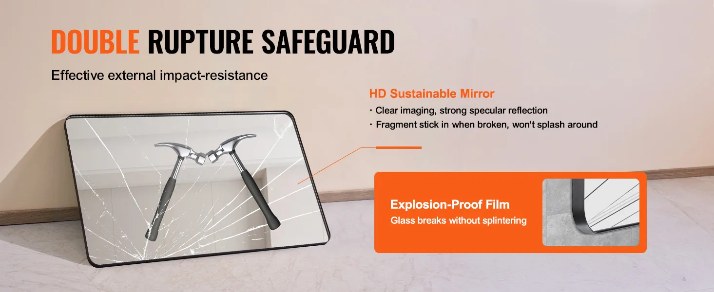 • Durable & Sturdy Mirror with Scratch-Resistance: This 0.15" high-definition mirror is daily wear & scratch-resistant , maintaining a fresh surface. The shatter-resistant film boosts impact-resistance, providing long-lasting clarity for any space.