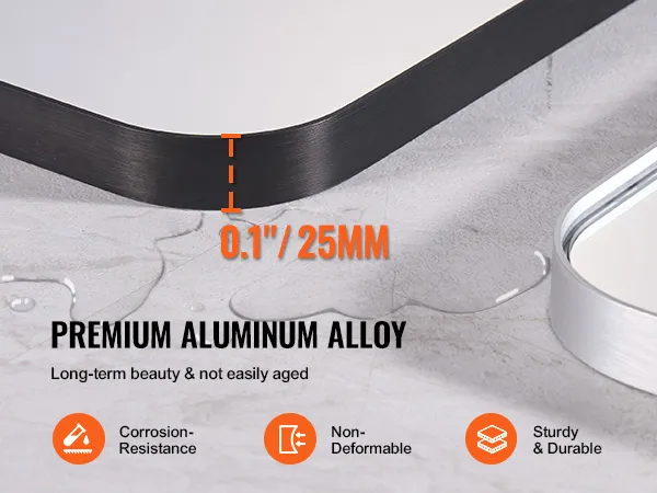 Crafted from high-quality aluminum alloy, the mirror’s lightweight frame is corrosion-resistant and retains its shine in wet spaces like bathrooms, offering long-lasting durability with a sleek, modern look.