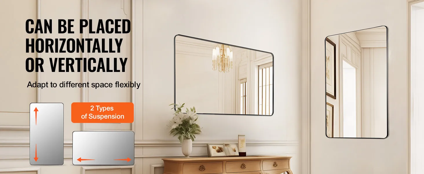 • Flexible Installation for Any Room: This mirror can be easily mounted in bathrooms, hallways, living rooms, or bedrooms, blending seamlessly with various interior styles. Its adaptable design allows it to fit comfortably into different layouts.