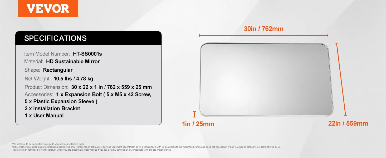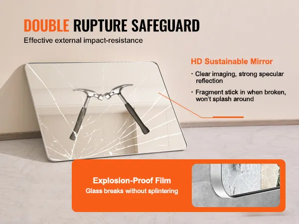 Durable & Sturdy Mirror with Scratch-Resistance: This 0.15" high-definition mirror is daily wear & scratch-resistant , maintaining a fresh surface. The shatter-resistant film boosts impact-resistance, providing long-lasting clarity for any space.