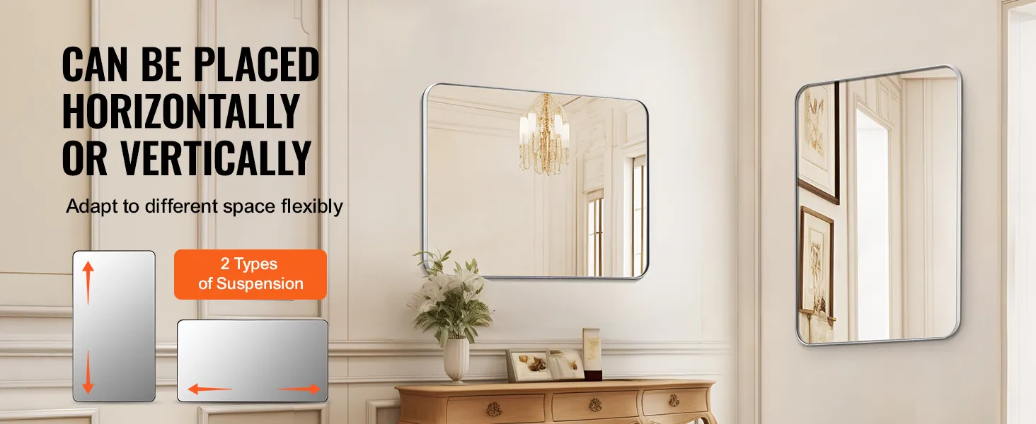 Flexible Installation for Any Room: This mirror can be easily mounted in bathrooms, hallways, living rooms, or bedrooms, blending seamlessly with various interior styles. Its adaptable design allows it to fit comfortably into different layouts.