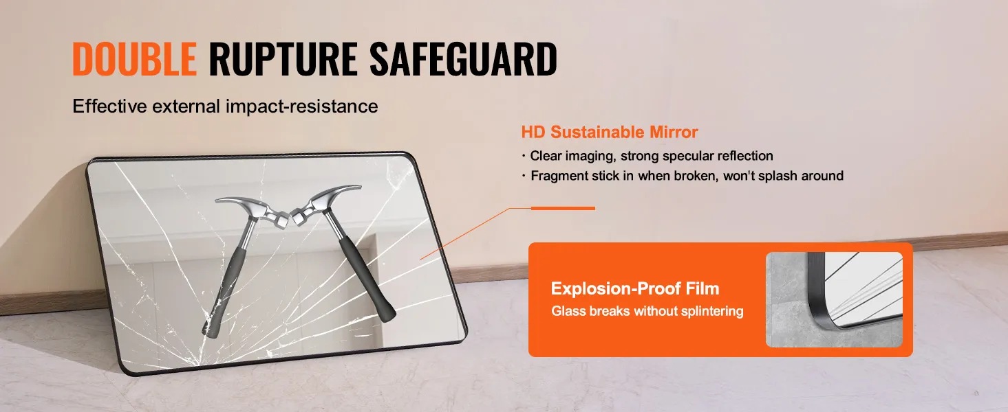 Durable & Sturdy Mirror with Scratch-Resistance: This 0.15" high-definition mirror is daily wear & scratch-resistant , maintaining a fresh surface. The shatter-resistant film boosts impact-resistance, providing long-lasting clarity for any space.