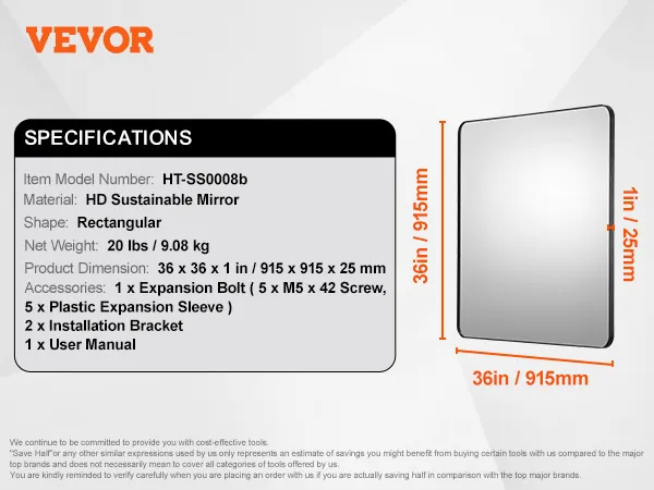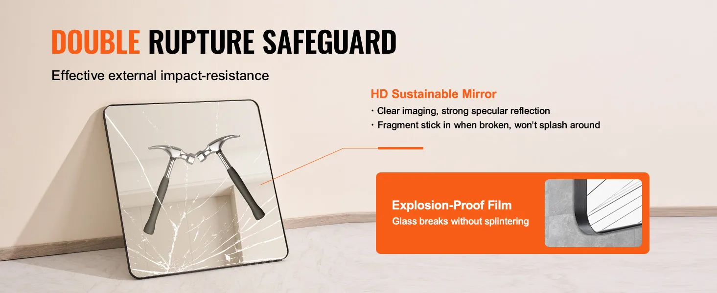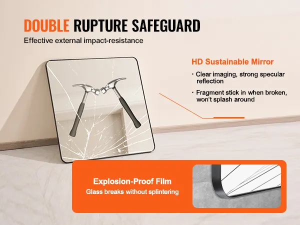 Duurzame en stevige spiegel met krasbestendigheid: deze 0,15 inch (3,81 mm) high-definition spiegel is slijtvast en krasbestendig en behoudt zijn schone oppervlak. De onbreekbare folie verhoogt de slagvastheid en zorgt voor langdurige helderheid in elke ruimte.