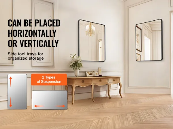 Flexibele installatie voor elke kamer: deze spiegel kan eenvoudig worden geïnstalleerd in badkamers, gangen, woonkamers of slaapkamers en past naadloos in verschillende interieurstijlen. Dankzij het aanpasbare ontwerp past hij comfortabel in verschillende indelingen.