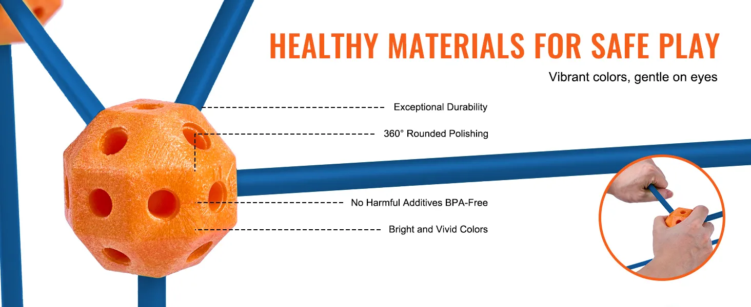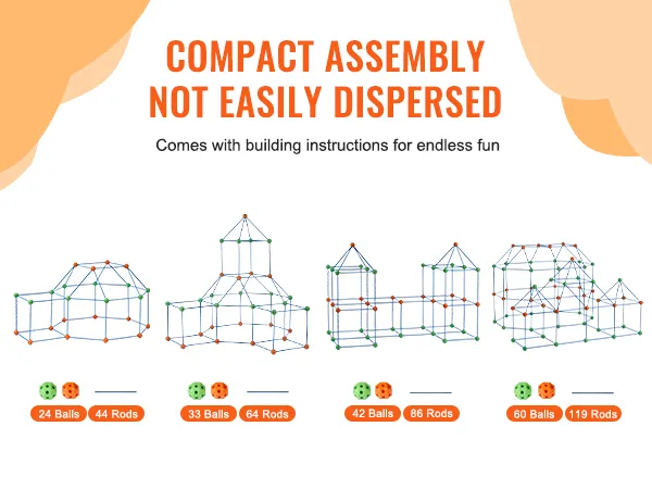 Safe Materials: Our fort building kit prioritizes natural materials for children's security. The connecting rods and balls are BPA-free, with smooth edges and a comfortable grip that enhances motor skills. They come in vibrant colors to stimulate cognitive development.