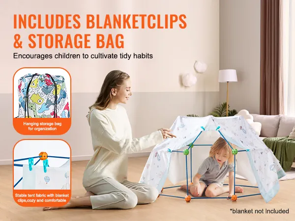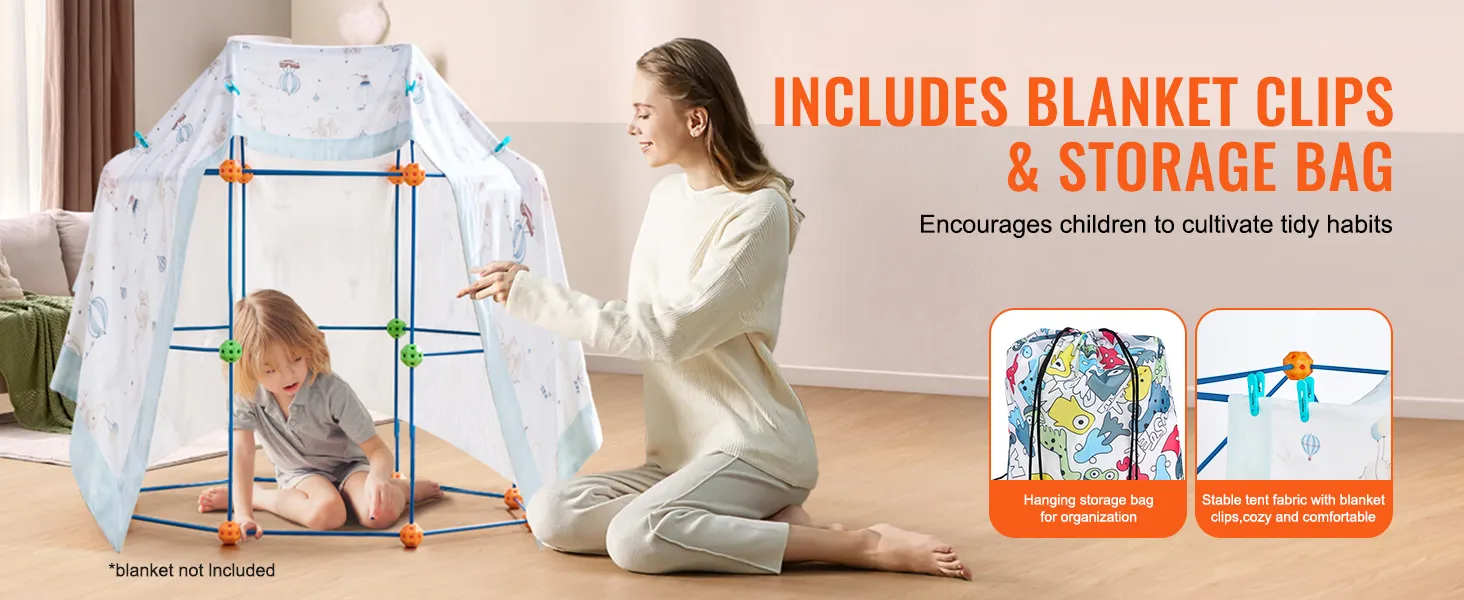Enjoy great value with our VEVOR fort builder kit. It includes extra pieces, sturdy construction (BPA-free), and comes with a convenient storage bag and blanket clips.