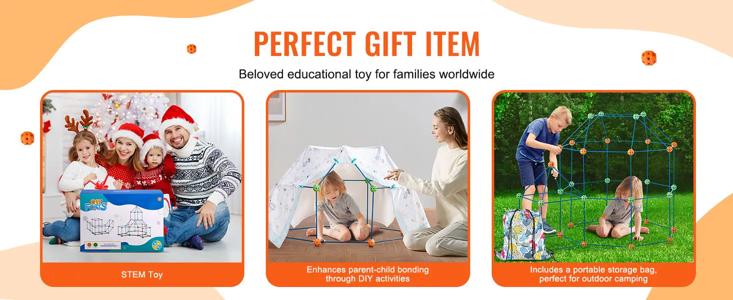 The VEVOR kids fort building kit helps children bring abstract ideas to life, from simple flat designs to complex 3D structures. It encourages problem-solving skills and creative thinking.