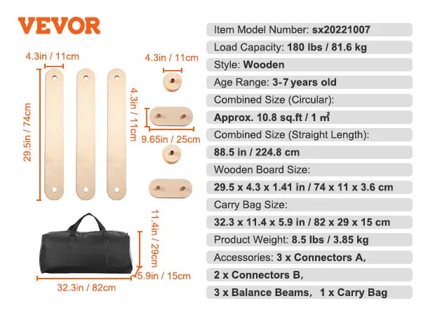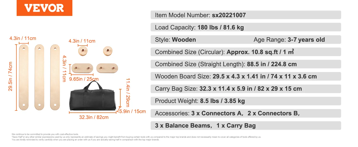 Strong 180 lbs Load Capacity: Ensuring security first, especially for children! Our balance beam stepping stones feature sturdy wooden boards securely attached to deepened connectors, supporting weights up to 180 lbs. Ideal for toddlers, kids, teens, and even adults to safely play and exercise.