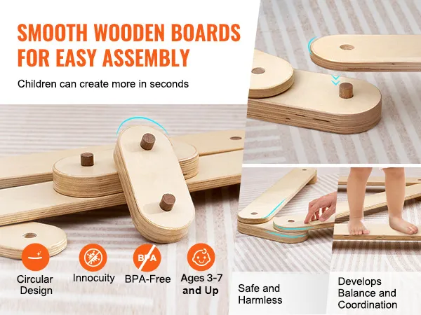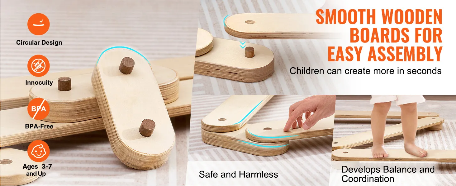 Crafted from thick, polished wood with rounded edges and health-friendly varnish, our balance beam stepping stones ensure security. Kids can easily assemble and play with confidence.
