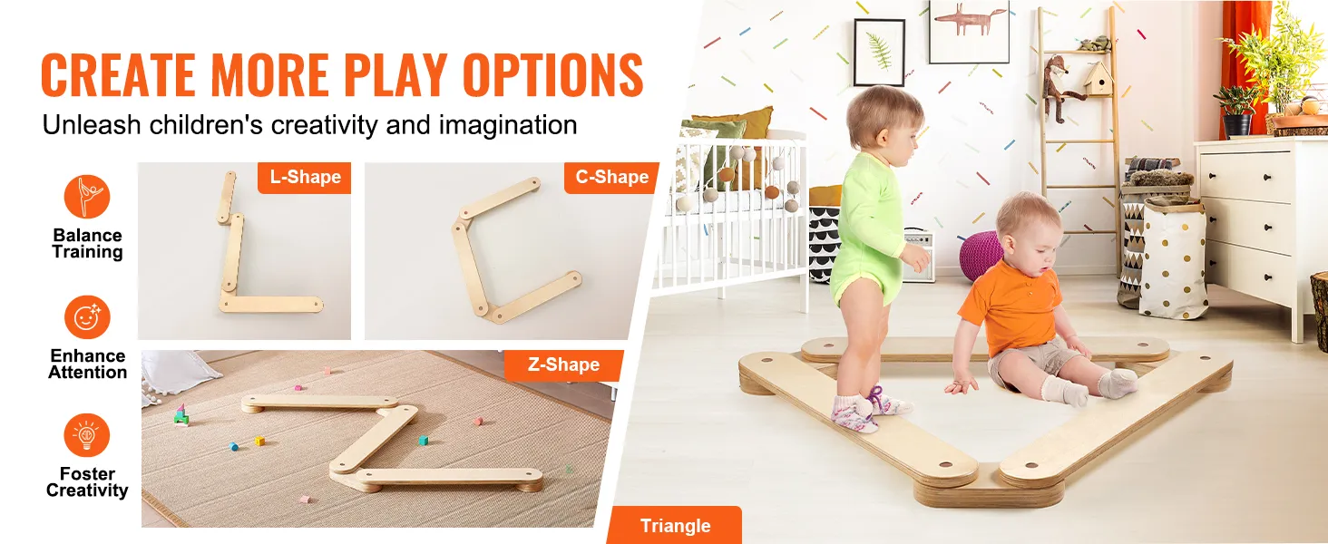 Our balance beam encourages kids to explore and create shapes for obstacle games, enhancing balance and hand-eye coordination. It's a great addition to any child's playtime.