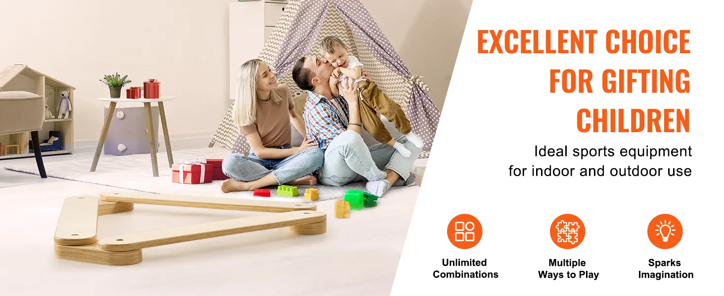 Explore Multiple Play Options: With 3 wooden balance beams, 3 connectors A, and 2 connectors B, kids can create various exciting combinations and enjoy DIY exploration. It's an excellent gift choice for birthdays, Christmas, and Children's Day, sparking curiosity and creativity.