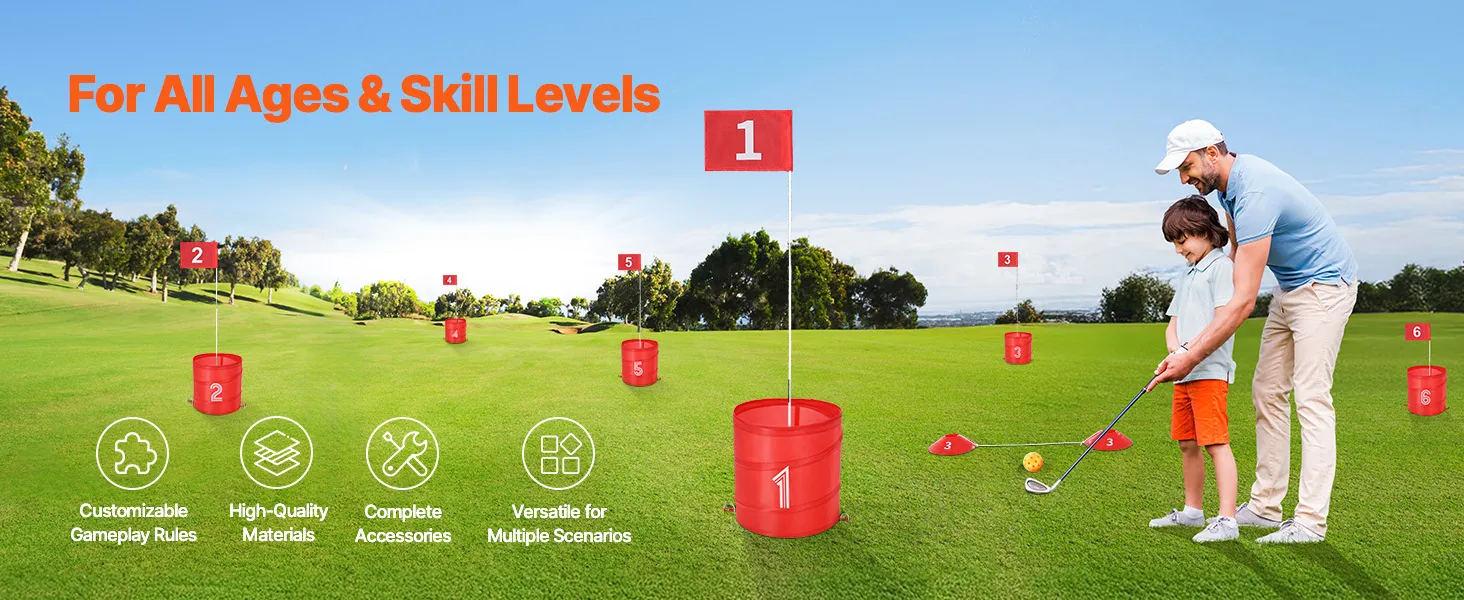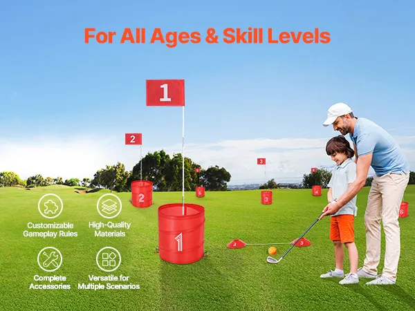Ons bucketgolfspel biedt aanpasbare spelregels, hoogwaardige materialen en complete accessoires. Het eenvoudige ontwerp maakt het gemakkelijk in gebruik en helpt kinderen de hand-oogcoördinatie te verbeteren, terwijl ouders en kinderen samen van de beweging genieten.