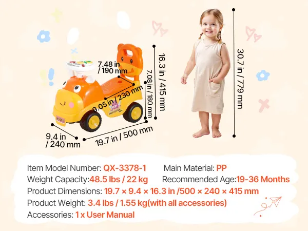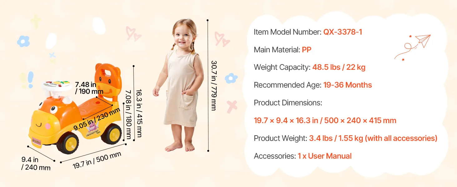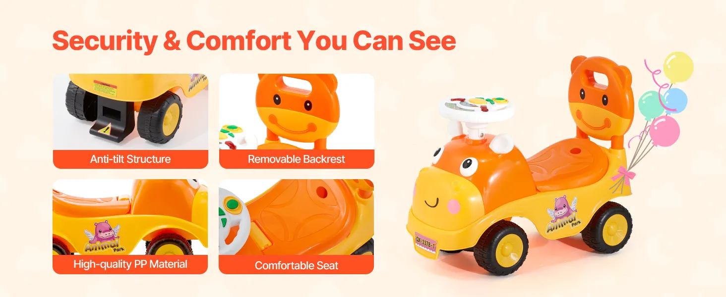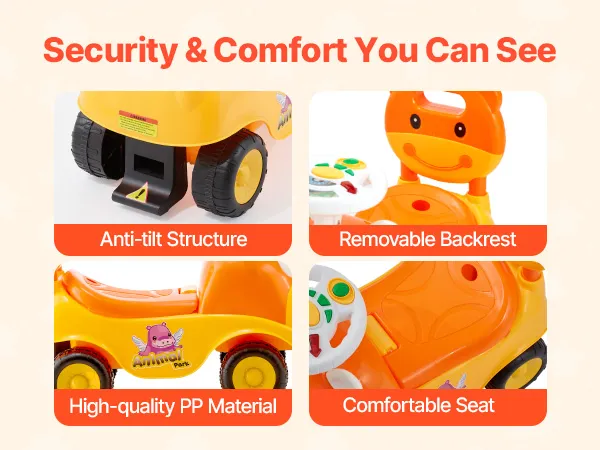 Drievoudige veiligheidsbescherming: de loopauto voor peuters is gemaakt van duurzaam PP-materiaal, kan een gewicht tot 22 kg dragen en is voorzien van een anti-kantelontwerp en een rugleuning om wiebelen te voorkomen en de veiligheid te garanderen.