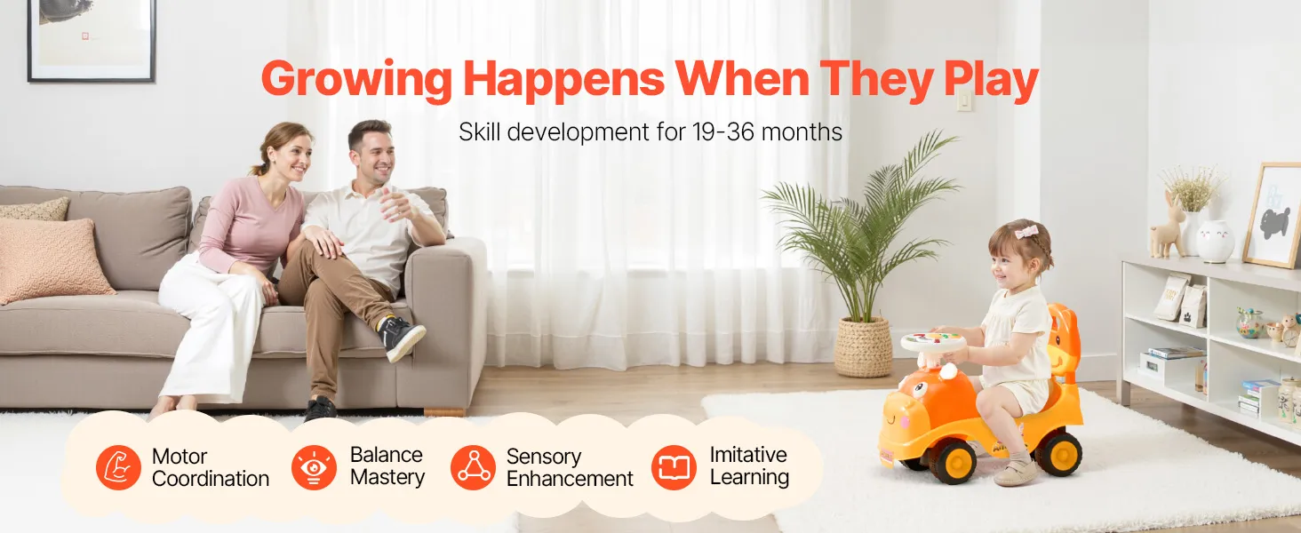 Deze leuke loopauto helpt je kind spieren op te bouwen met elke trapbeweging. Hij is ideaal voor kinderen van 19 tot 36 maanden die groeien en hun wereld ontdekken.
