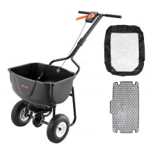 VEVOR 36,29 kg kunstmeststrooier, zaadstrooier met 12 inch wielen, stalen spikes, beluchter, kunstmeststrooier, tuinzaaimachine en zoutstrooier, voor woongebouwen, boerderijen, moeilijk terrein, zwart