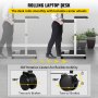 VEVOR mobiel sta-bureau met verstelbare hoogte en gemarkeerde afmetingen, met zwart-wit design.