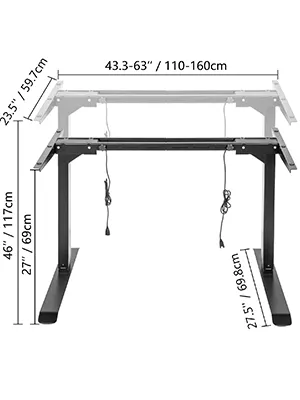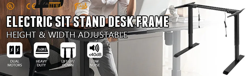 Ben je het zat om lang te zitten om te werken of studeren? Dan moet je in het bezit zijn van dit elektrisch verstelbare zit-sta bureauframe. Met krachtige, stille dubbele motoren aan twee kanten kan uw werkstation eenvoudig in de ideale positie worden geplaatst. Hij is in hoogte en breedte verstelbaar en past op tafelbladen met een lengte van 115 cm tot 180 cm. Het hele stevige stalen frame maakt het duurzaam en stevig - een redelijk bureauframe voor thuis en op kantoor.