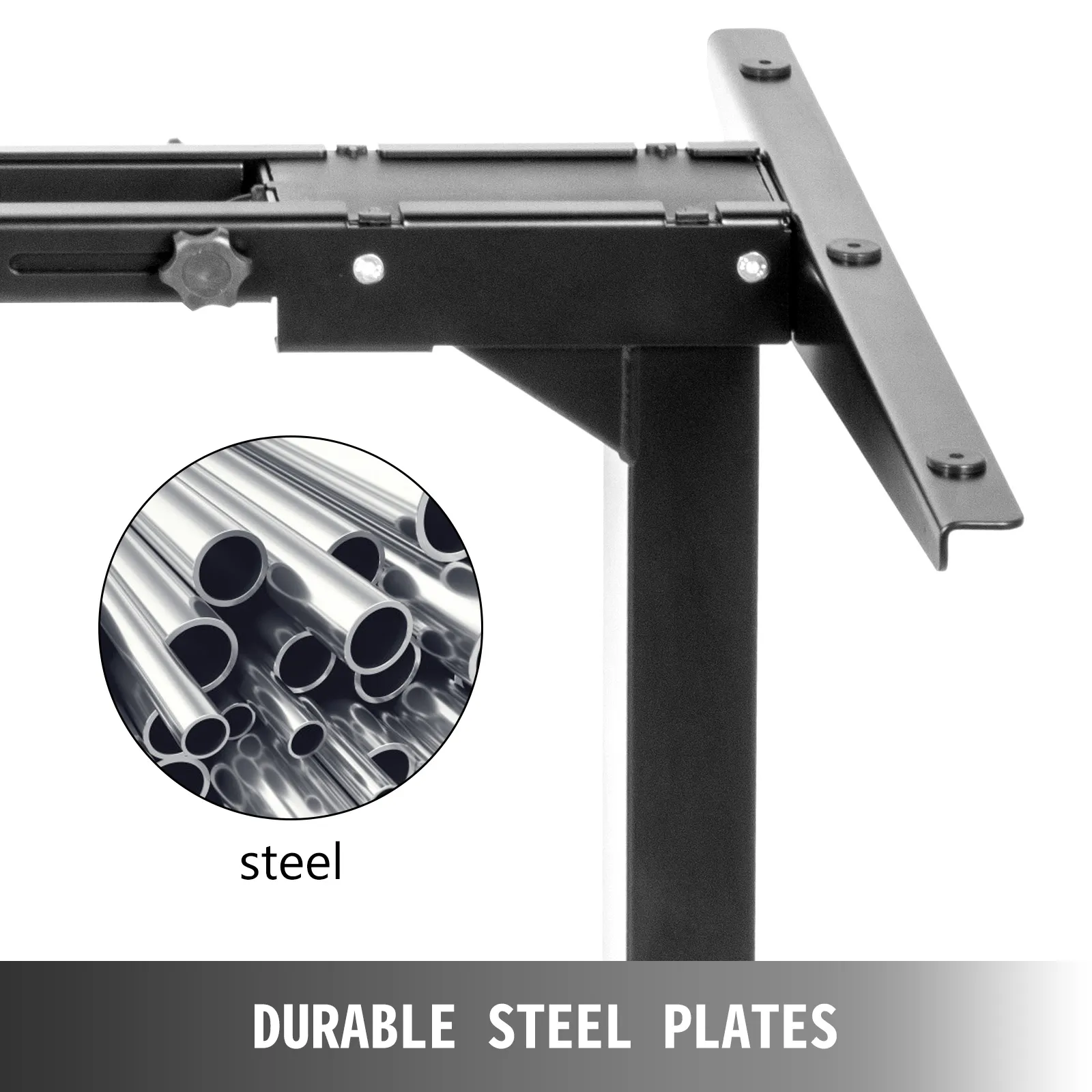 【STURDY CONSTRUCTIE】 - Kleur: Zwart; Materiaal: staal; Dit sta-bureauframe is gemaakt van dikke stalen buizen en is aan het oppervlak gepoedercoat voor duurzaamheid en corrosiebestendigheid. Draagvermogen frame: 120 kg. Passeer de testnormen van CE, UL, CB, SAA en BIFMA.