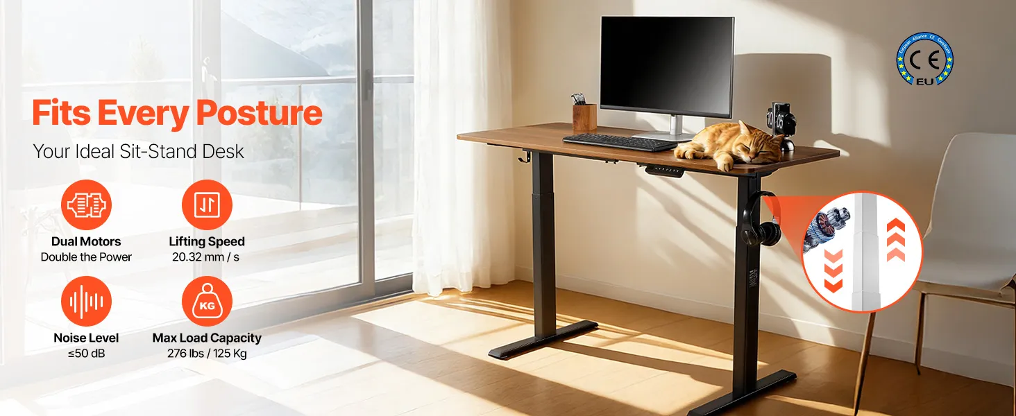 Dit elektrische staande bureauframe is ideaal voor geconcentreerd leren thuis, efficiënt werken op kantoor en dagelijkse activiteiten, en helpt comfort en productiviteit te behouden.