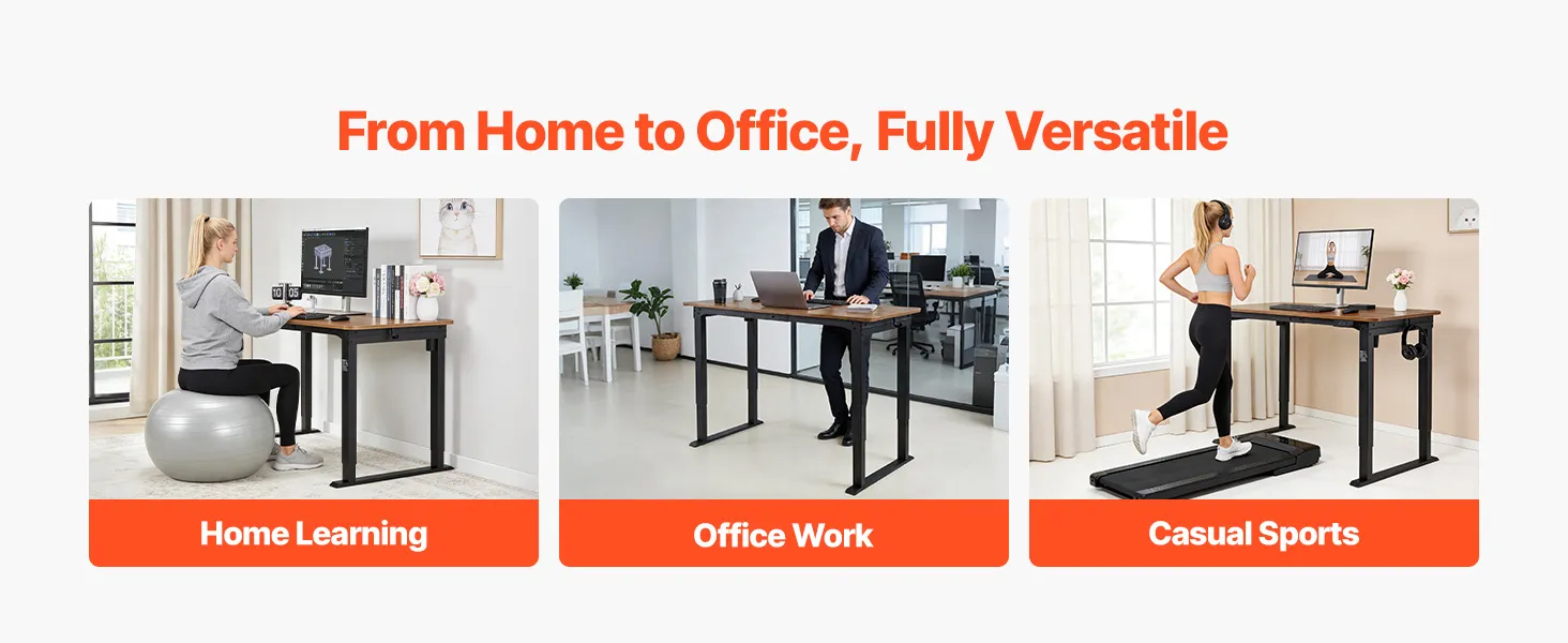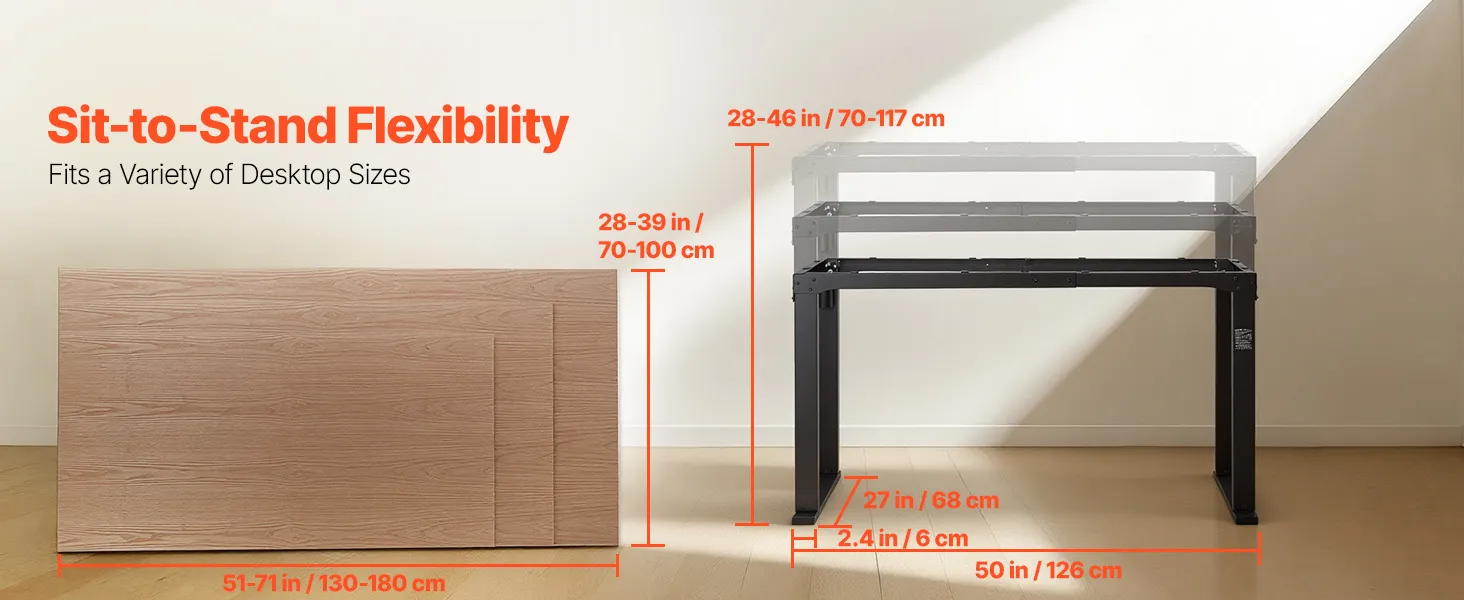 Veelzijdige tafelbladcompatibiliteit: De poten van het staande bureau passen op veel standaard tafelbladen (breedte: 70–100 cm, lengte: 130–180 cm). Personaliseer je werkplek door het frame te combineren met je favoriete tafelblad.