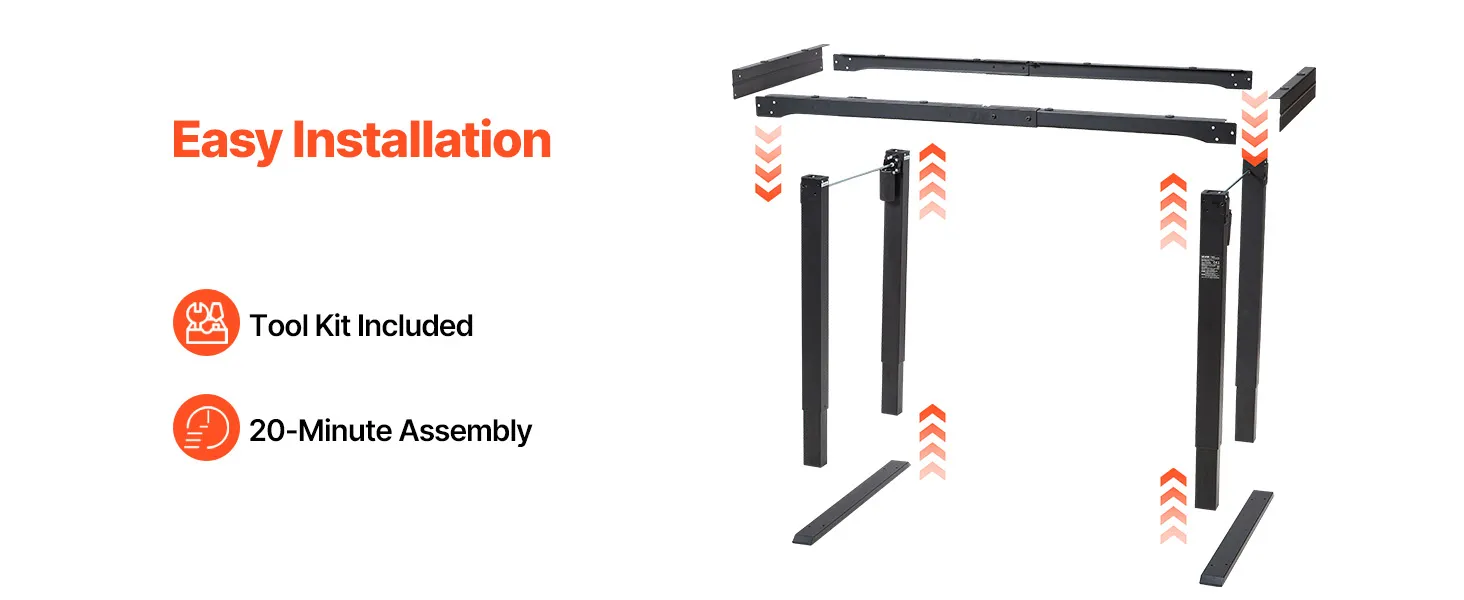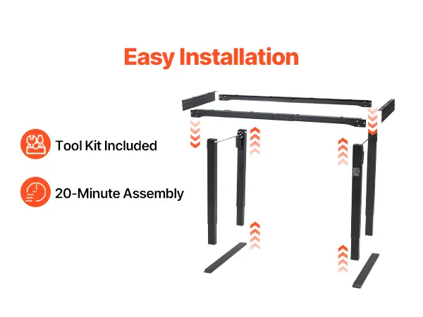 Het frame van dit elektrische staande bureau kan snel worden gemonteerd met het meegeleverde gereedschap en minimale schroefwerkzaamheden, waardoor u uw werkplek moeiteloos kunt inrichten.
